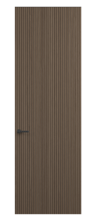 SELECT — коллекция минималистичных дверей с фрезеровкой по натуральному шпону. Рельеф на поверхности полотна создаёт игру света и тени, добавляя пространству динамичности и визуального объёма. Двери SELECT в сочетании со стеновыми панелями и мебельными фасадами, повторяющими лаконичный дизайн, создают единое стилевое решение.